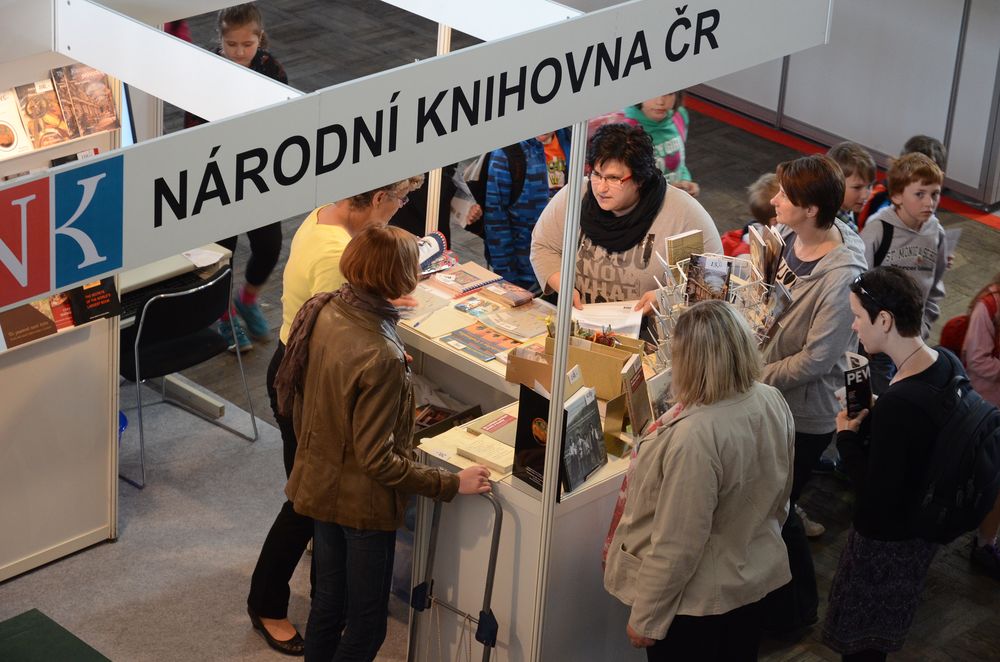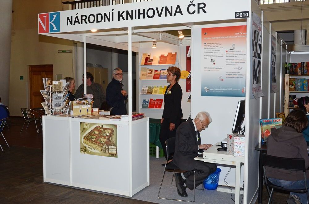 Fotogalerie z veletrhu Svě knihy Praha 2015. Národní knihovna ČR již tradičně přivítala návštěvníky ve svém stánku v pravém křídle Průmyslového paláce, kde je možné získat informace o knihovně a jejích službách. K zakoupení zde jsou jak publikace, které knihovna vydala, tak i propagační předměty. Foto: Eva Hodíková, NK ČR.