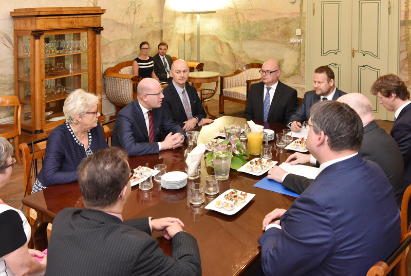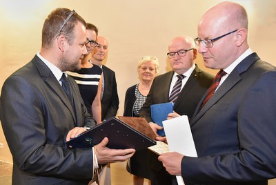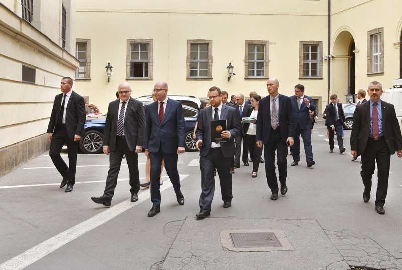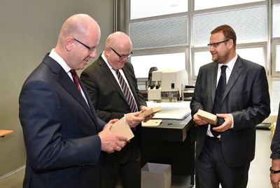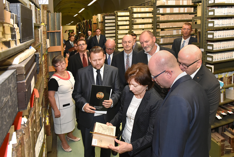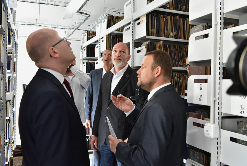 Návštěva premiéra Bohuslava Sobotky a ministra kultury Daniela Hermana v Národní knihovně