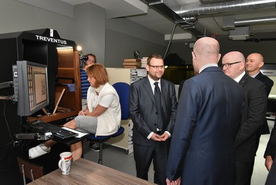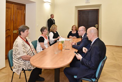 Součástí celého programu bylo setkání s vedením Národní knihovny ČR, prohlídka pracovišť Klementina, která ještě neprošla rozsáhlou revitalizací, představení prostor právě skončené 2. etapy revitalizace areálu Klementina, dále již zmiňovaná bilanční schůzka a následná tisková konference, po níž následovalo setkání premiéra se zástupci odborové organizace. Poté se čelní vládní představitelé se svými delegacemi a zástupci Národní knihovny přesunuli do Centrálního depozitáře v Hostivaři. Foto: Milena Kárná, NK ČR.