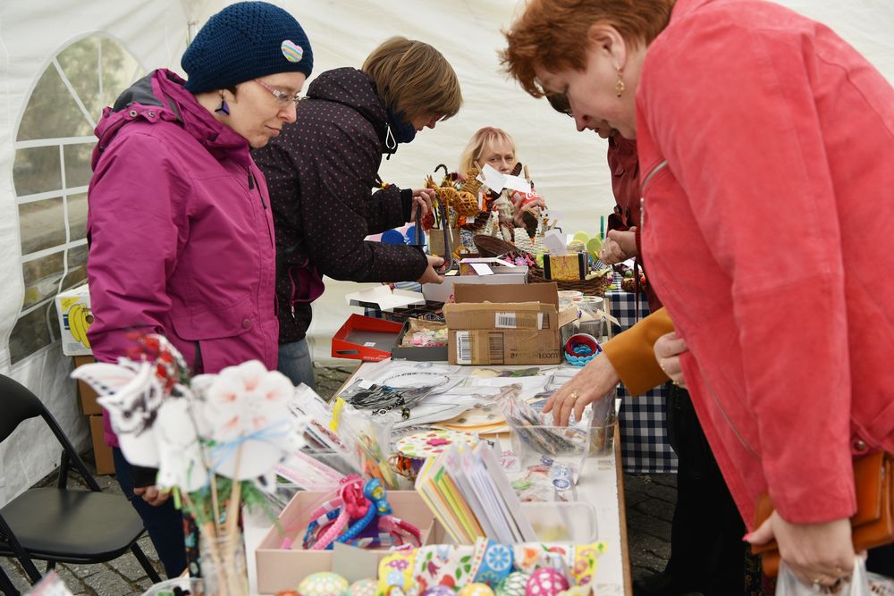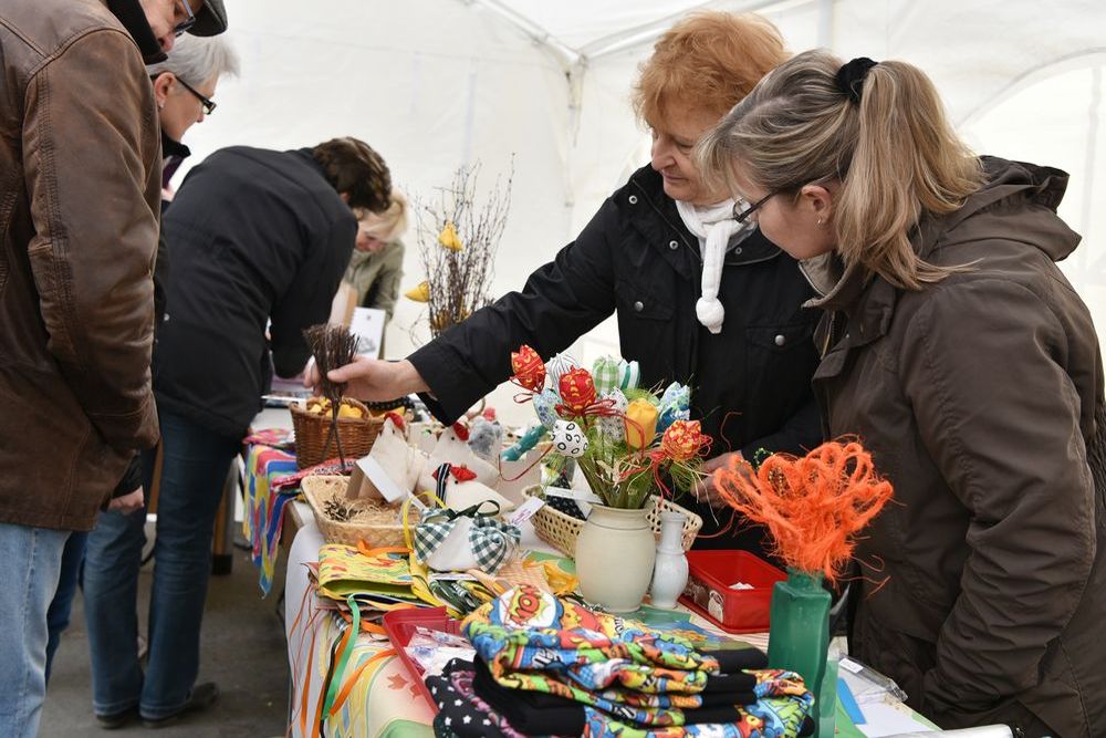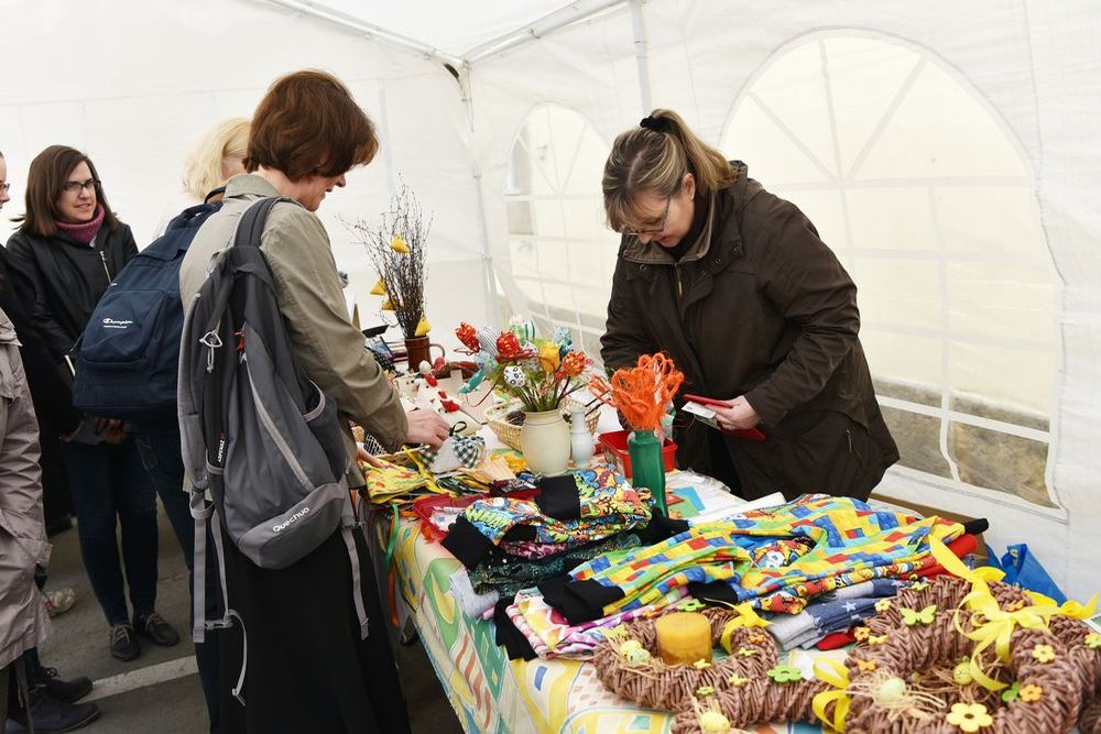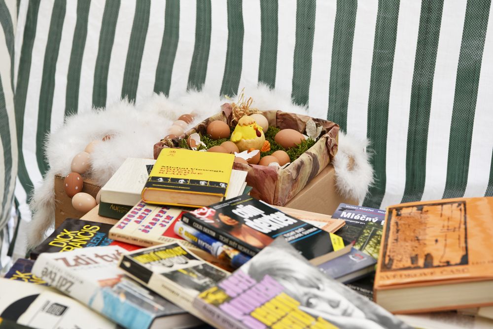 Nádvoří Klementina ožilo 11. dubna 2017 na jeden den atmosférou jarních svátků a velikonočních tradic. K vidění i k zakoupení byly tradiční i originální rukodělné výrobky. Novinkou na letošním jarmarku byl bazar knih. Foto: Eva Hodíková, NK ČR.