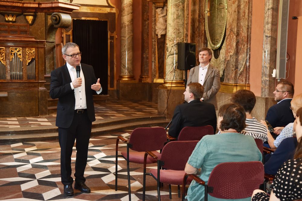 Fotogalerie ze slavnostního uvedení PhDr. Víta Richtera do funkce generálního ředitele Národní knihovny ČR, které se konalo za účasti ministra kultury Lubomíra Zaorálka v Zrcadlové kapli Klementina dne 22. července 2020. Foto: E. Hodíková, NK ČR.