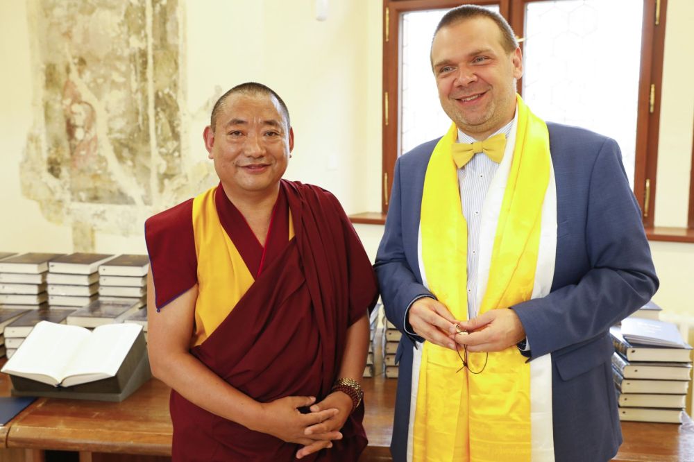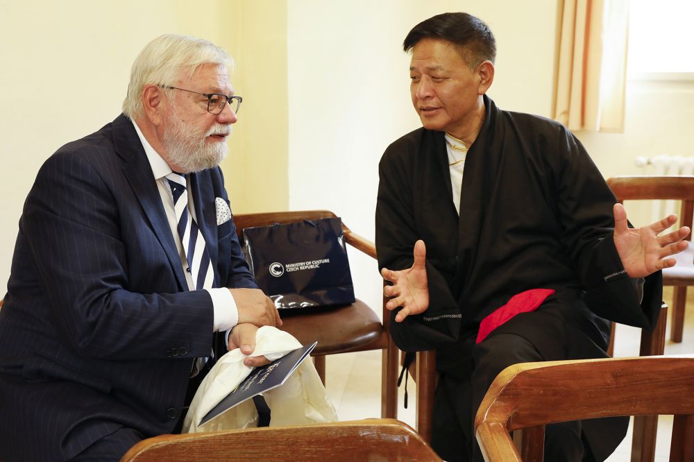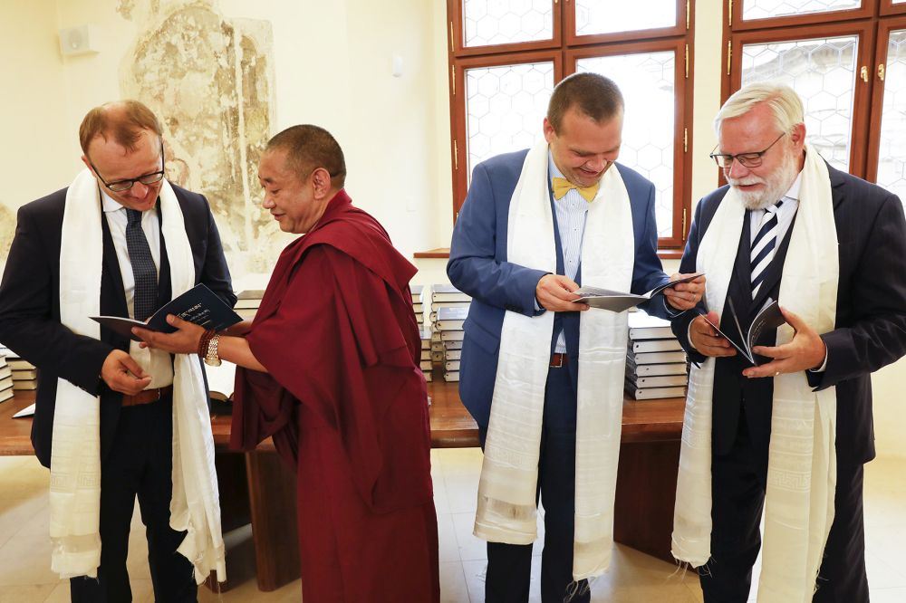 Dne 30. 8. 2022 došlo k předání knižního daru tibetské exilové vlády Národní knihovně ČR. Sbírky knihovny obohatilo 223 svazků Monlamova tibetského výkladového slovníku. Za přítomnosti ministra kultury Martina Baxy jej z rukou pana Sikjong Penpa Tseringa, předsedy Ústřední tibetské správy, převzal generální ředitel NK ČR Tomáš Foltýn. Foto: Miroslav Kučera.