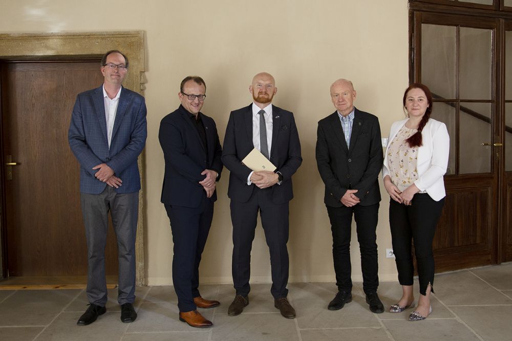 V úterý 30. 5. 2023 navštívil Národní knihovnu České republiky J. E. velvyslanec Velké Británie v České republice Matt Field. Společně s generálním ředitelem Národní knihovny ČR Tomášem Foltýnem a náměstkem pro vědu, výzkum a mezinárodní vztahy diskutovali otázky dlouhodobé spolupráce British Library a Národní knihovny ČR v oblasti digitalizace historických i novodobých fondů, novou koncepcí British Library pro nadcházející období, oslavy jejího padesátého výročí a přirozeně i možnosti dalších společných aktivit v oblasti propagace kultury a vzdělávání obou zemí. J. E. Matt Field si zároveň prohlédl unikátní prostory Klementina a seznámil se se zajímavými dokumenty ze sbírek Národní knihovny ČR, které akcentovali jak relevanci k historii Spojeného království, tak osobní zájem J. E. Matta Fielda o japonské dějiny. Foto: M. Tichá, NK ČR.