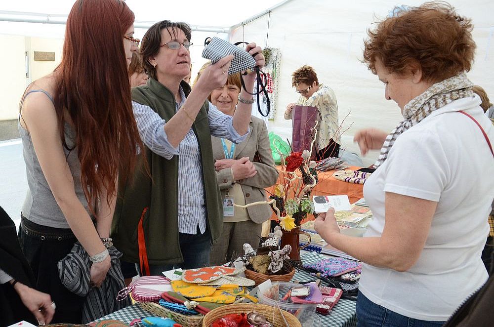 Národní knihovna ČR a Klub tvořivých knihovníků SKIP uspořádali 25. dubna 2013 první jarní jarmark v Klementinu. K zakoupení byly šité a malované šperky, obrázky, enkaustické a akrylové obrázky, šperky s polodrahokamy, jarní dekorace a mnohé další. V jarní nabídce představily své výrobky také chráněné dílny. Výtěžek byl tradičně věnován nadačnímu fondu Klíček na provoz dětského hospice. Foto: Eva Hodíková, NK ČR.