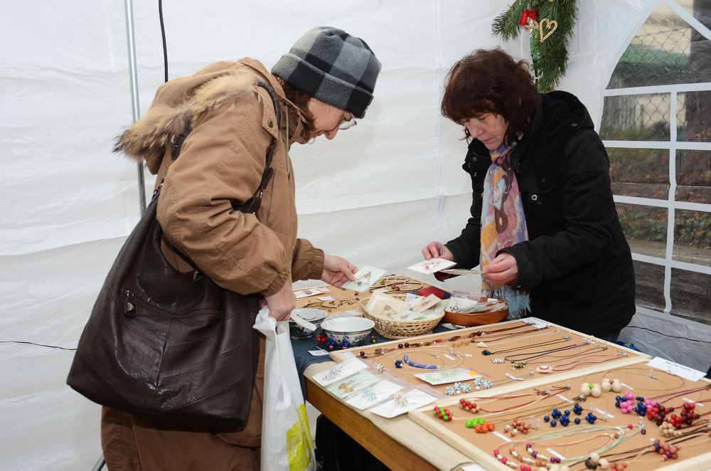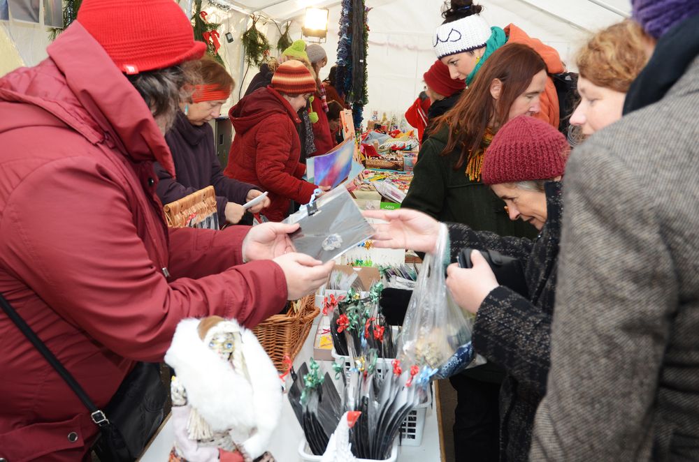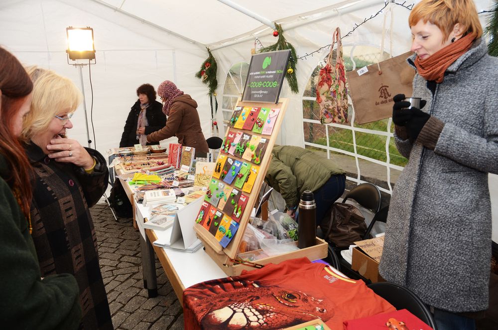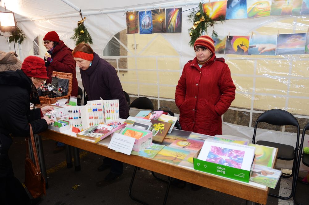 Fotogalerie z vánočního jarmarku v Klementinu, který se konal 4.12. 2013. Jarmark nabídl vánoční atmosféru a inspiraci, k vidění i zakoupení byly šperky z nejrůznějších materiálů, textilní doplňky, výrobky ze dřeva či papíru, korálky, patchworkové textilie, keramika, vánoční dekorace a mnohé další. Na závěr jarmarku byl slavnostně rozsvícen "národní" strom. Pořádala Národní knihovna ČR a Klub tvořivých knihovníků SKIP. Výtěžek z jarmarku bude věnován nadačnímu fondu Klíček na provoz dětského hospice. Foto: Eva Hodíková, NK ČR.