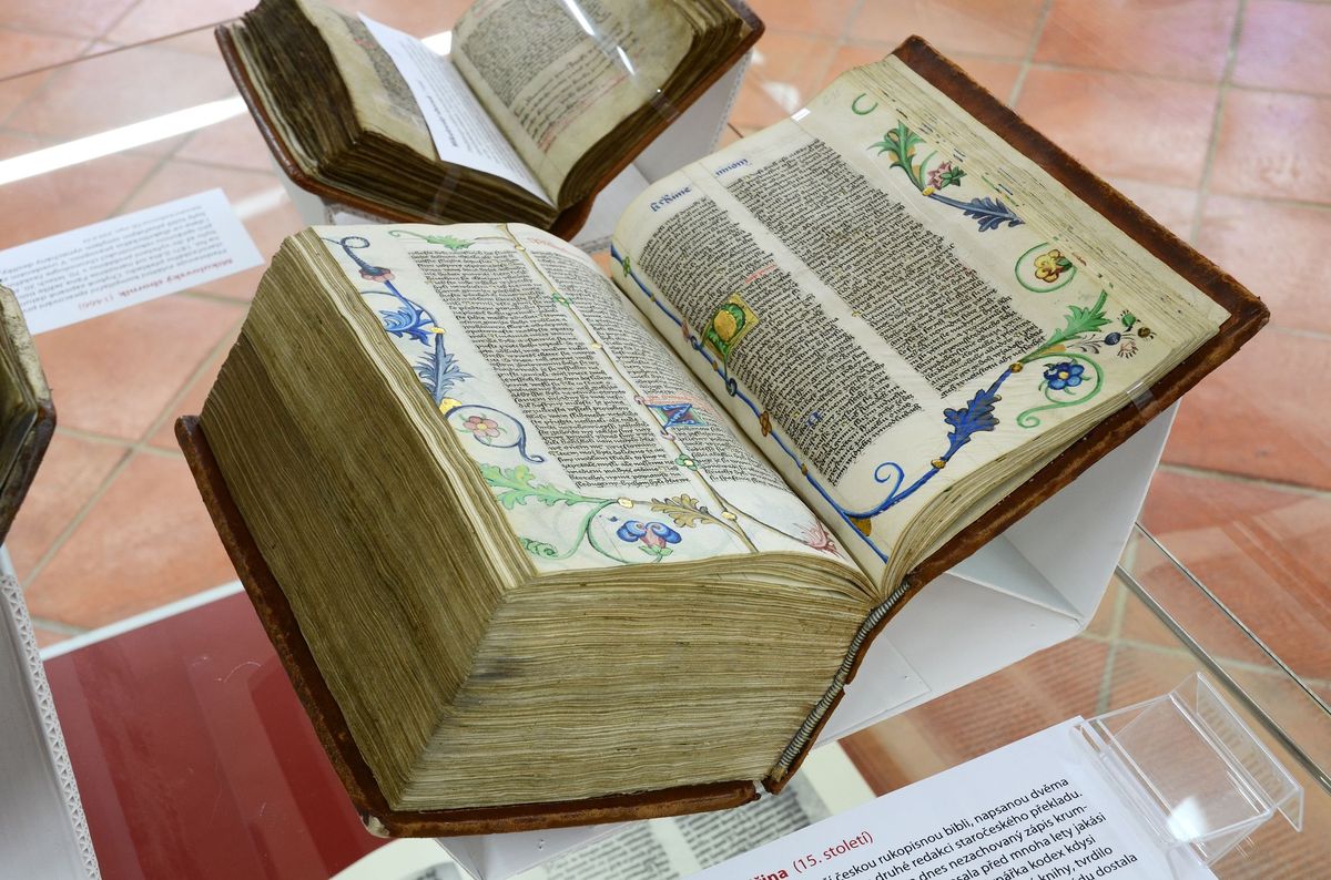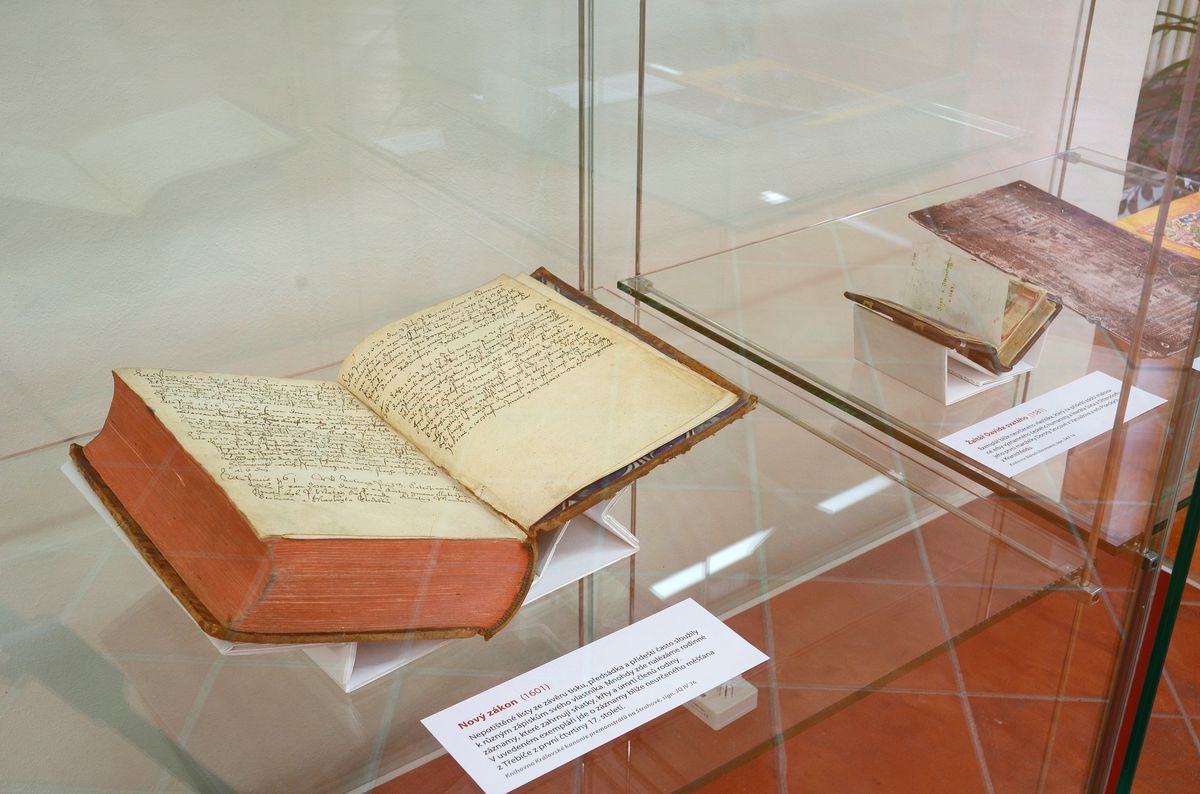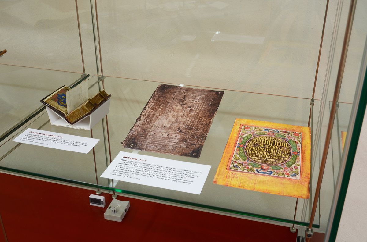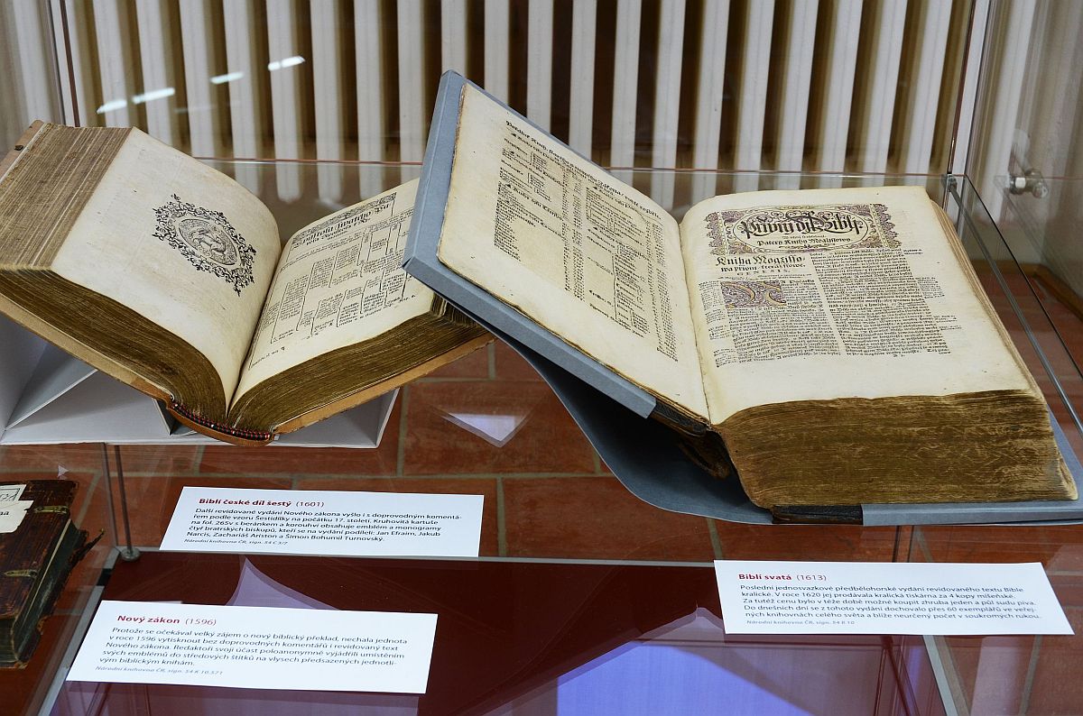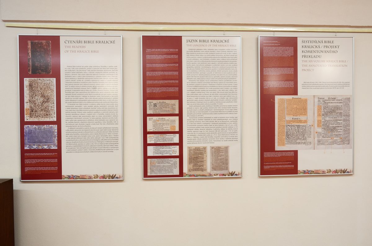 Výstava ke čtyřstému výročí posledního předbělohorského vydání Bible kralické je dosud nejucelenější výstavou k tomuto tématu, představující i nejnovější vědecké poznatky. Seznamuje s dějinami kralického překladu od jeho vzniku až do současnosti a přibližuje, proč se Bible kralická stala jedním z klenotů národní kultury. Exponáty z fondů Národní knihovny ČR i dalších významných sbírek představují starší české biblické překlady, původní tisky Bible kralické a její cizojazyčné předlohy i některé dobové písemné dokumenty, které dosud veřejnost neměla možnost spatřit. K vidění jsou také původní tiskařské literky, nalezené na tvrzi v Kralicích, unikátní korekturní obtahy části bratrského kancionálu, staré tisky, jejichž význam zůstával donedávna skryt, včetně exemplářů z vlastnictví významných osob své doby, např. tisky v dobové vazbě pocházející z knihoven moravských Žerotínů nebo pánů z Valdštejna. Výstava se koná ve Výstavním sále Galerie Klementinum od 12. září do 3. listopadu 2013. Foto: Eva Hodíková, NK ČR.