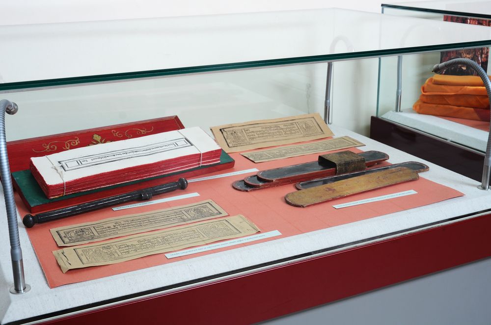 Výstava představuje tradiční tibetskou knižní kulturu a sakrální malby z 1. pol. 20. století. Tisky, thangky, dřevěné tiskařské matrice i votivní předměty pocházejí ze soukromých sbírek v Ladaku, Tibetu, Mongolsku a Nepálu. Výstava probíhá pod záštitou ministra kultury České republiky Daniela Hermana. Výstavní chodba v přízemí - 26. 5. - 9. 7. 2016. Foto: Eva Hodíková, NK ČR.