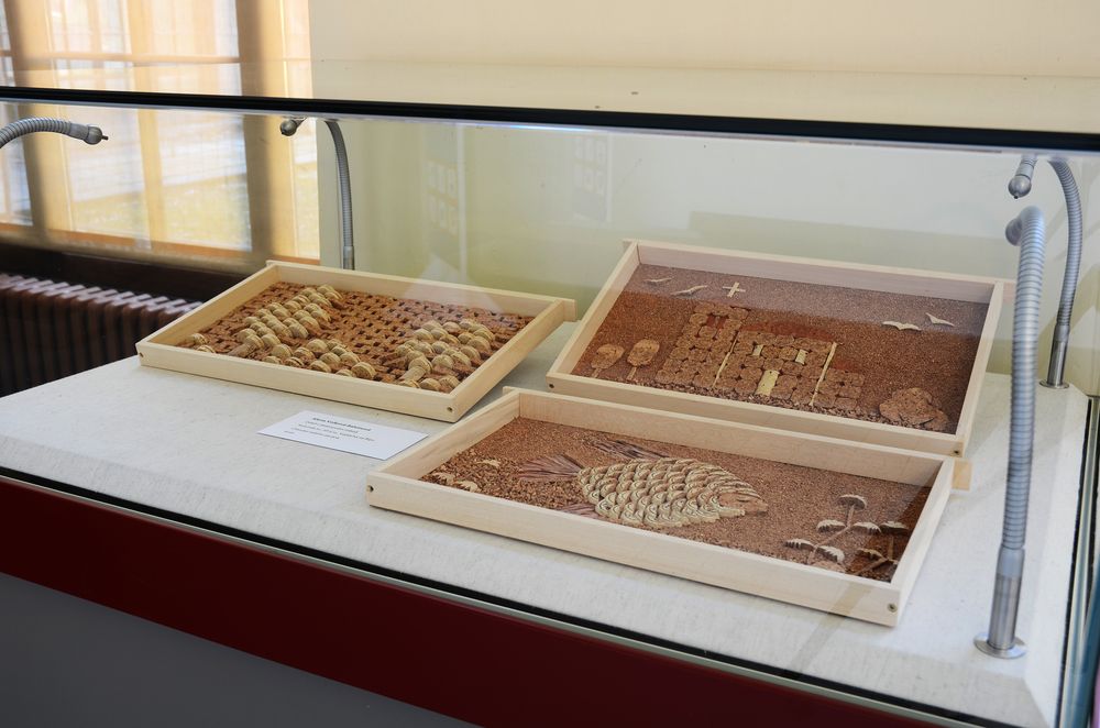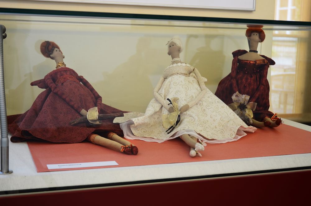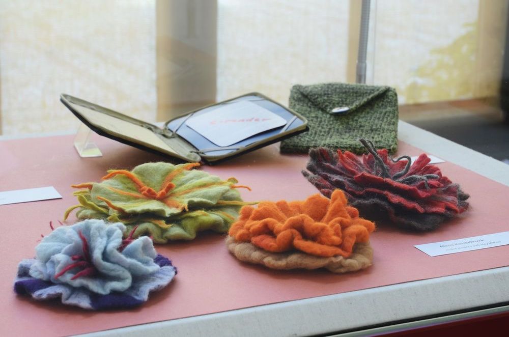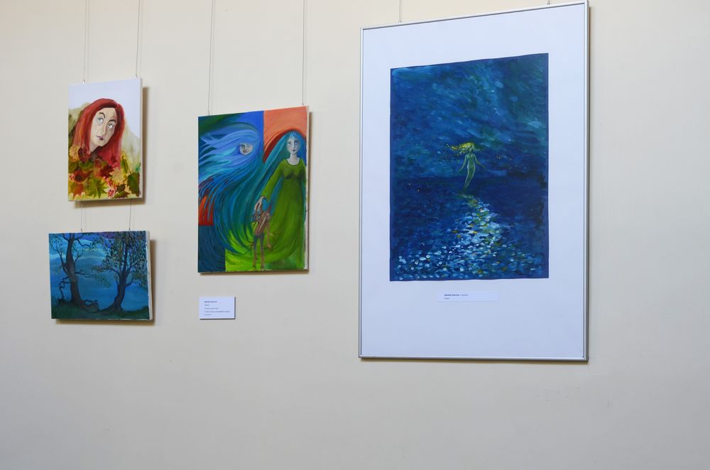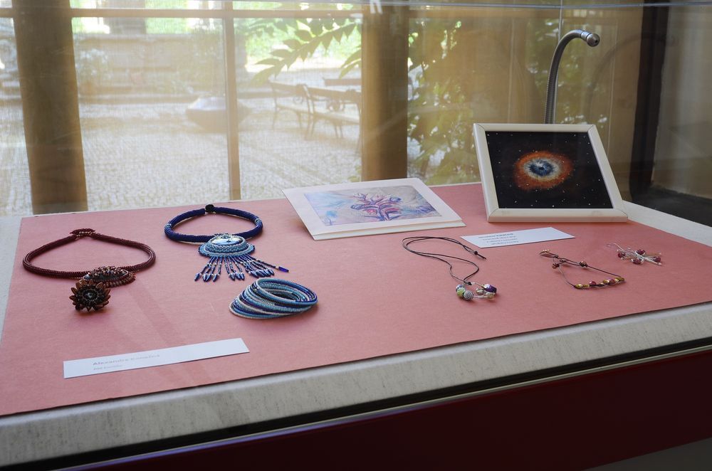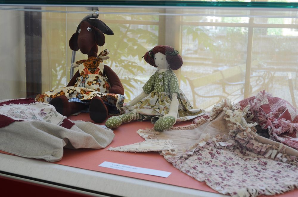 Fotogalerie z výstavy kreseb, maleb, keramiky, drátování, paličkování, smaltů, fotografií, prací z kůže, papíru, korku či textilu – patchworku, batiky, loutek aj. Autorkami vystavených prací jsou členky Klubu tvořivých knihovníků, který vznikl jako nová sekce Svazu knihovníků a informačních pracovníků (SKIP) v roce 2010 a sdružuje převážně knihovnice s výtvarným zaměřením. Foto: Eva Hodíková, NK ČR.