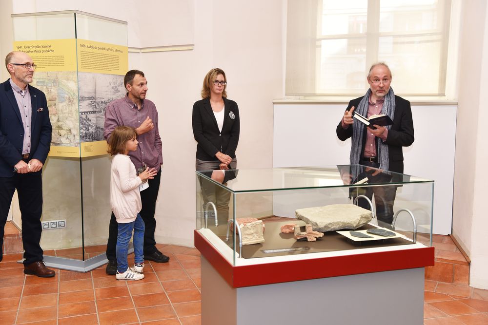 Fotogalerie z vernisáže výstavy, na níž archeologové prezentují poprvé výsledky svých mnohaletých výzkumů široké veřejnosti. Jejich nové objevy v mnoha směrech rozšiřují znalosti o nejstarší historii Starého Města pražského. Návštěvníci se mohou seznámit s podobou nejstaršího dominikánského kláštera, o němž se předpokládalo, že takřka zcela zanikl při výstavbě barokní jezuitské koleje. Rekonstruován je rovněž vzhled i proměna okolní středověké zástavby včetně dosud neznámých románských staveb. Poprvé je uvedena informace o nejstarších pohřebištích v této části města. Součástí výstavy jsou i nejzajímavější movité artefakty středověkého původu, nalezené v letech 1997 až 2017. Výstava je pořádána ve spolupráci s Národním památkovým ústavem. Vernisáž se konala 11. září 2019. Foto: E. Hodíková, NK ČR.