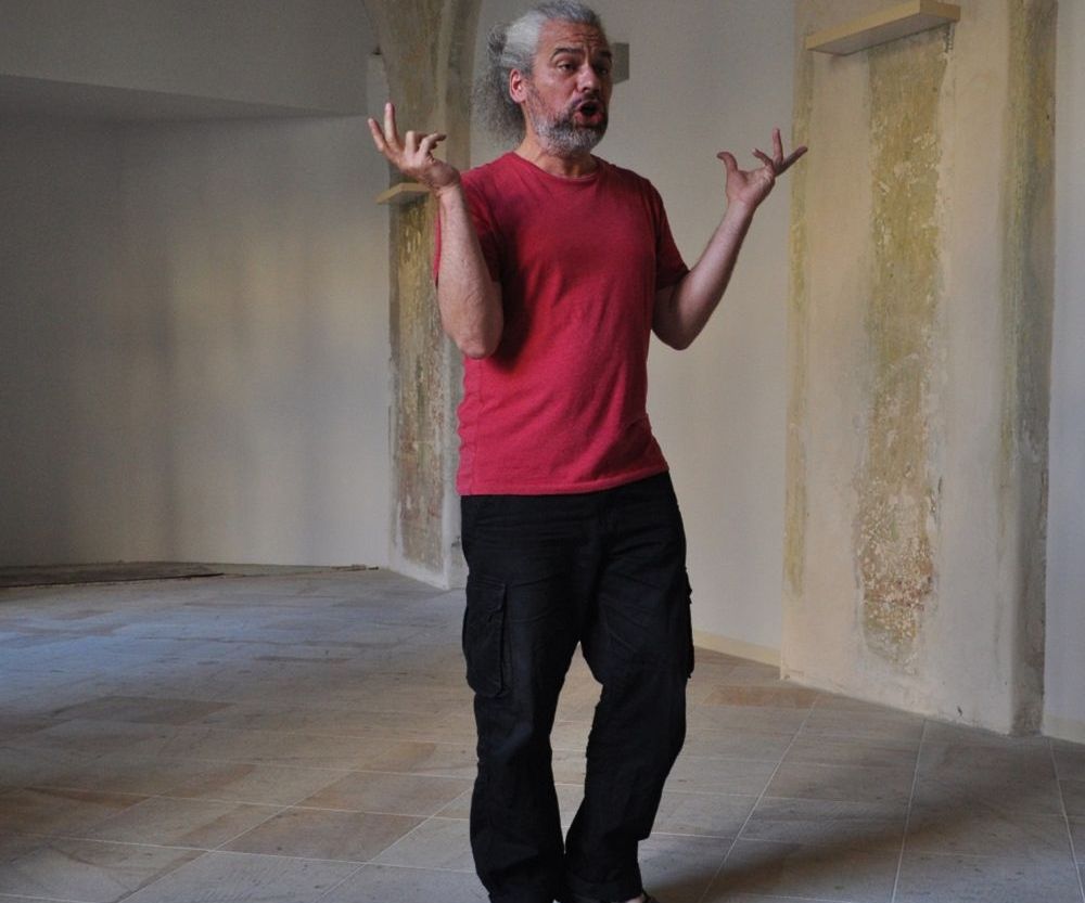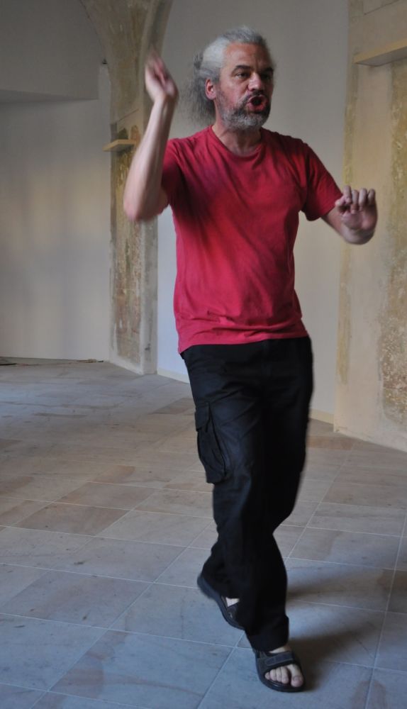 Základní myšlenkou fyzického básnictví je vytváření komplexního jazyka, osobního a univerzálního zároveň, originálně propojeného s tradicí. Na počátku to vypadalo jako hlasově-pohybová „animace“ textů v češtině, pak jako akční poezie vytvářená z trosek češtiny, latiny, světových jazyků a umělé řeči, pak jako „ozvučená pantomima“ s náznaky slov a bezprostřední reagování na zvuky a situaci v terénu („řeč světa“). Hlavními inspiracemi fyzického básnictví jsou kromě každodenního života také dějiny různých uměleckých oborů, religionistika, psychologie a biologie. Jeho úplným prvopočátkem byly příležitostné žertovné recitace básně Lokomotivám se motají kola, hlasové a pohybové parodie na ruský futurismus, kterými Petr Váša bavil své publikum od roku 1985. Klementinum - 7. 6. 2016. Foto: Tereza Vaisová, NK ČR.
