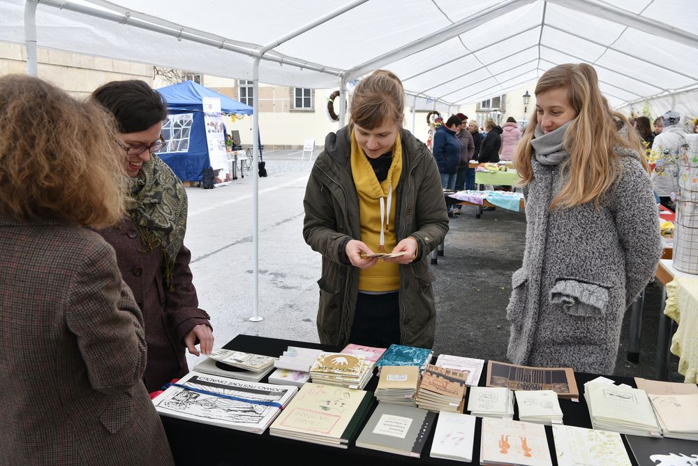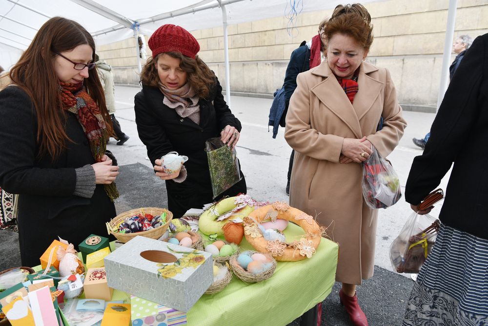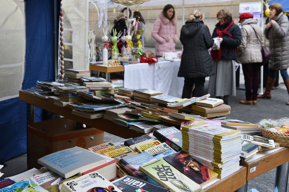Fotogalerie z velikonočního jarmarku, který nabídl návštěvníkům originální velikonoční dekorace, rukodělné výrobky chráněných dílen a bazar knih. Součástí bylo i představení činnosti Souborného katalogu NK ČR a prohlídky Zrcadlové kaple zdarma. Akce se konala 28.3.2018 na nádvoří Klementina. Foto: E. Hodíková, NK ČR.