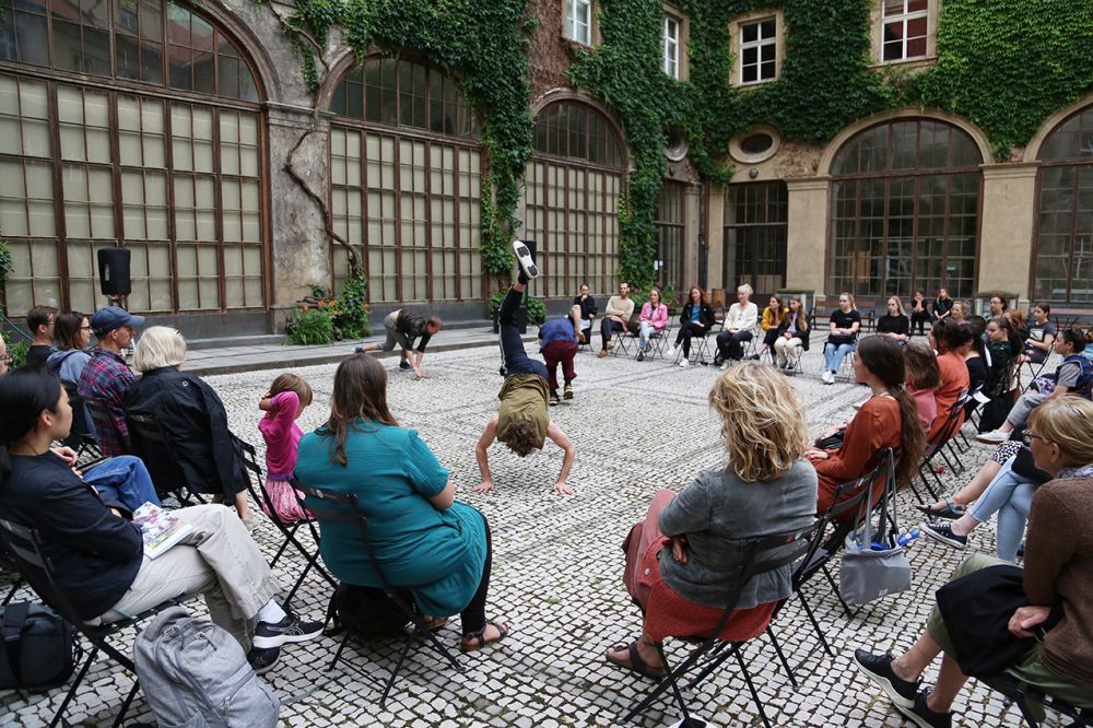 Všechno je to o… (It´s All About…) lidské blízkosti. V interaktivním představení rakouské choreografky Helene Weinzierl, kde nechybí nadsázka, nejsou protagonisty jen tři mužští performeři, ale i vy sami. Nejprve ve vlastním světě, posléze ve vztahu s druhými, společně vytvářejíce novou realitu. Na první pohled zábavná setkání však v sobě skrývají i absurditu současné společnosti. O čem je život? O všem a o ničem. Taneční představení se konalo na Révovém nádvoří Klementina ve dnech 23. - 24. 6. 2023. Foto: M. Tichá, NK ČR.