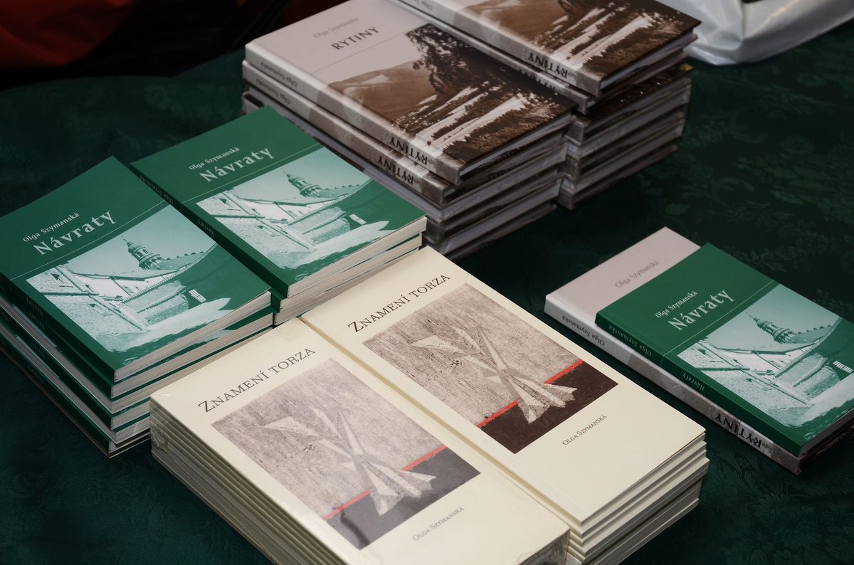 Básně Olgy Szymanské přednesla herečka Gabriela Vránová za hudebního doprovodu kytaristy Davida Fiedlera. Program doplnila výstava autorčiných fotografií-básní spolu s grafikami a kresbami jejích dvorních ilustrátorů. Večerem provázel Jiří Zbořil. Akce se konala 26. 6. 2013 od 18 hodin ve Výstavním sále Galerie Klementinum. Foto: Eva Hodíková, NK ČR.