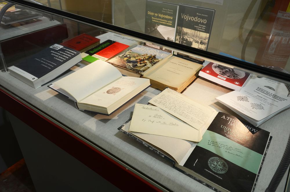 Výstava u příležitosti 100. výročí bulharistiky na Filozofické fakultě UK v Praze představuje rozsah a kvalitu bulharské sbírky Slovanské knihovny na příkladech nejstarších titulů knih, periodik a prací českých bulharistů, ale i českých překladů bulharské krásné literatury nového tisíciletí. Předsálí Všeobecné studovny 9. 11. 2016 –14. 1. 2017. Foto: E. Hodíková, NK ČR.