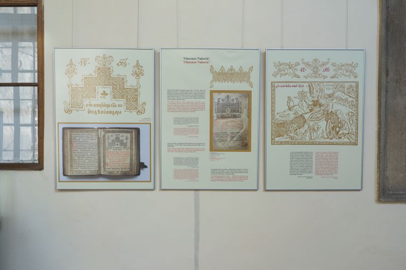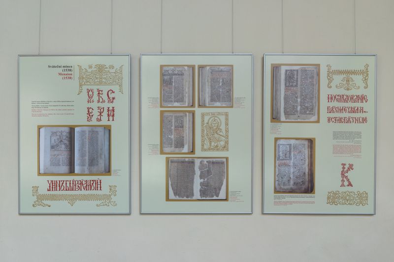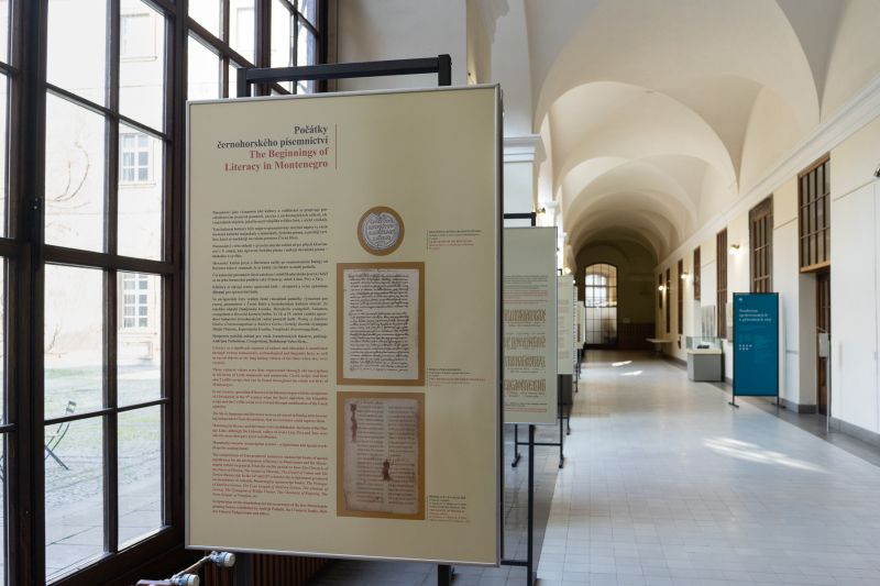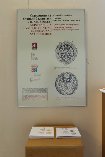 Fotogalerie z výstavy, kterou připravila Matice černohorská a pořádá ji společně se Slovanskou knihovnou. Formou panelů v češtině a angličtině přehledně představuje toto významné počáteční období slovanského knihtisku, jeho hlavní osobnosti a jejich působení. Díky mnoha reprodukcím přibližuje nejdůležitější díla vydaná v obou zmíněných tiskařských dílnách. Dva tituly – Žaltář s kantiky (1495) vydaný Ðurđe Crnojevićem a Sváteční minea (1538) z dílny Božidara Vukoviće – jsou prezentovány v podobě fototypického vydání. Foto: Zuzana Homolka Fedorová, NK ČR.